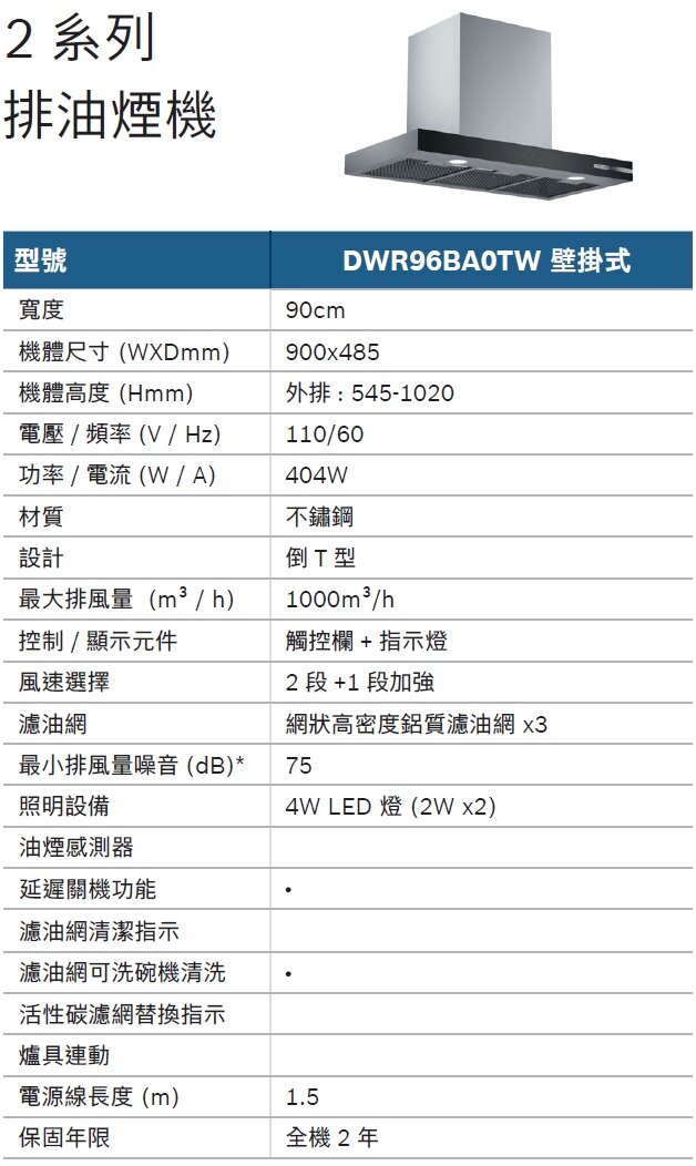 2系列 壁掛式排油煙機